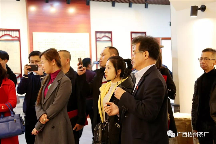 文化展示館。對清潔化、連續(xù)化、機(jī)械化的生產(chǎn)線表示贊賞,對梧州茶廠的文化底蘊(yùn)表示贊揚(yáng)。